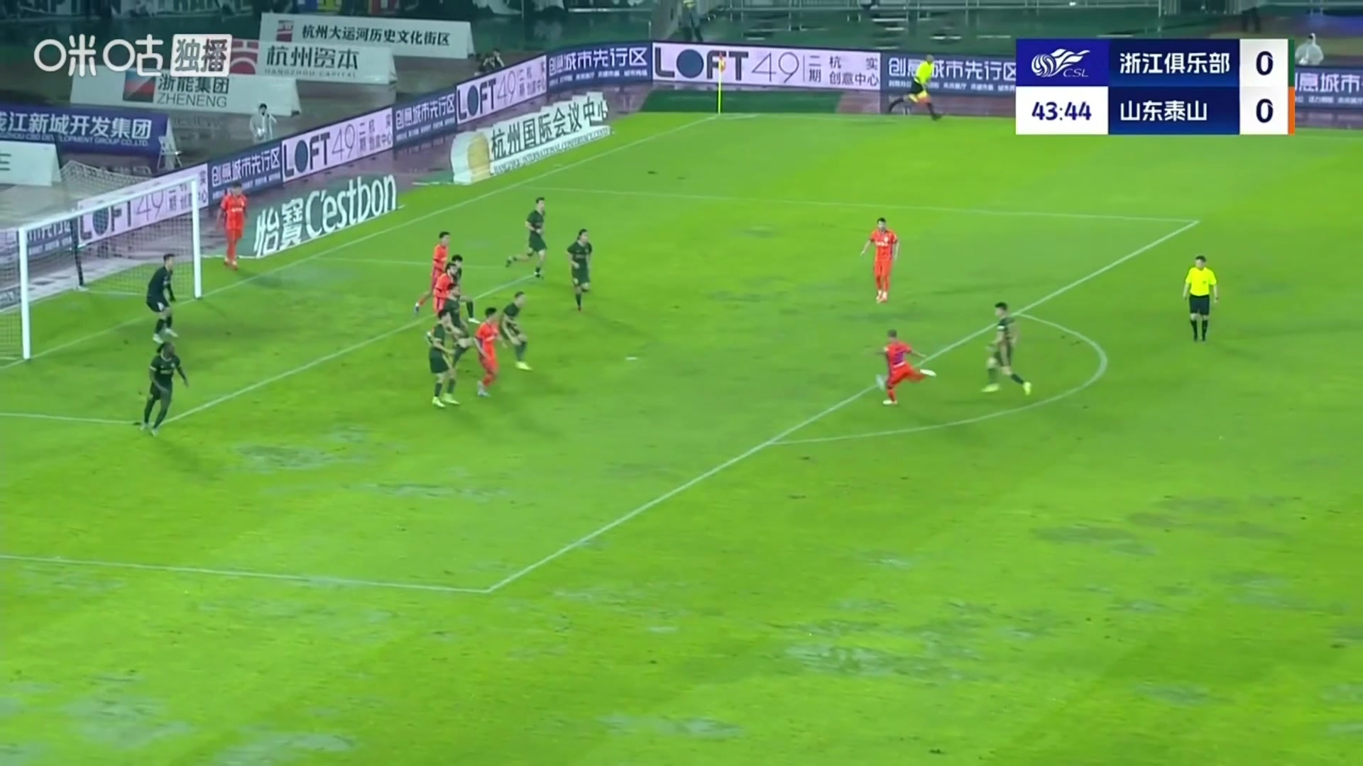 泰山先拔头筹黄政宇禁区外远射破门随后一路滑跪怒吼